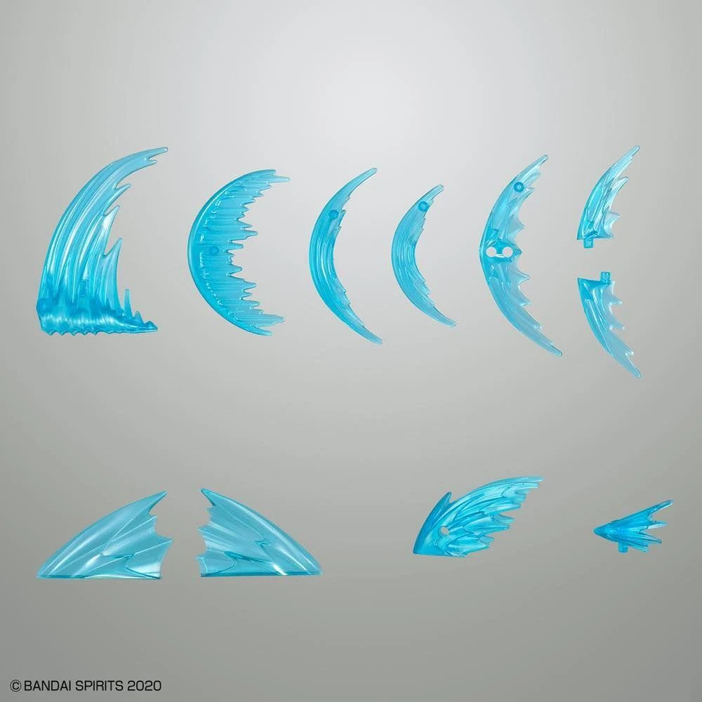 Customize your 30 Minutes Missions kits this kit with these blue effect and joint parts that recreate the visual effects of swords cutting and slashing through the air. Compatible with 30mm models and other similar sized kits! Â