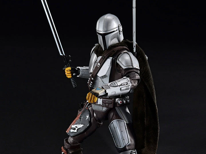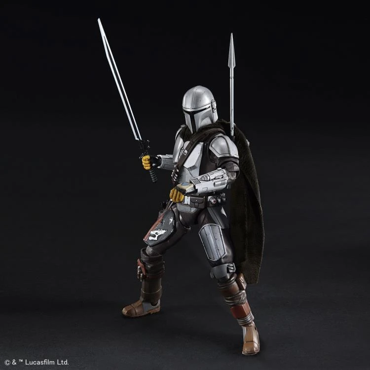 This Bandai model kit of The Mandalorian wearing his Beskar Armor is based on his appearance in the second half of the first season of the hit Disney plus series. Once complete, the 1/12 scale Mandalorian figure includes a detachable jetpack, the Dark Saber, a blaster rifle, a blaster pistol, and the beskar spear.Â