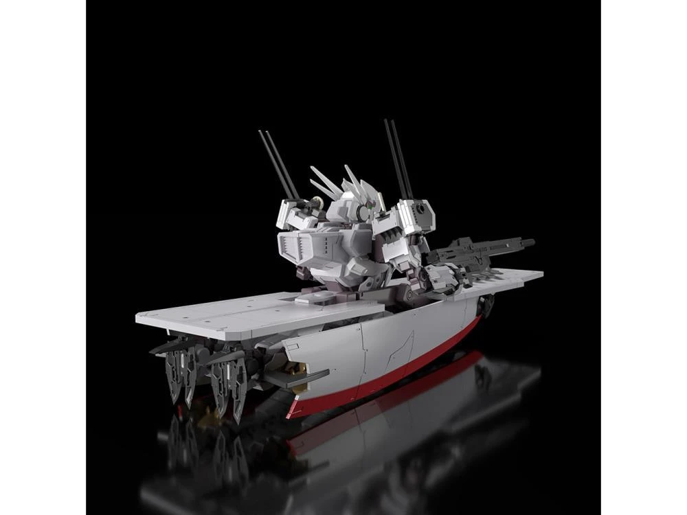 From the main mechanic designer of the Frame Arms series, Takayuki Yanase,the first of the second generation of military warship-type Frame Arms with newly sculpted parts is born! Izumo features newly designed head, chest, shoulder, knees, and armor. This model kit can completely transform from human-mode to warship-mode.