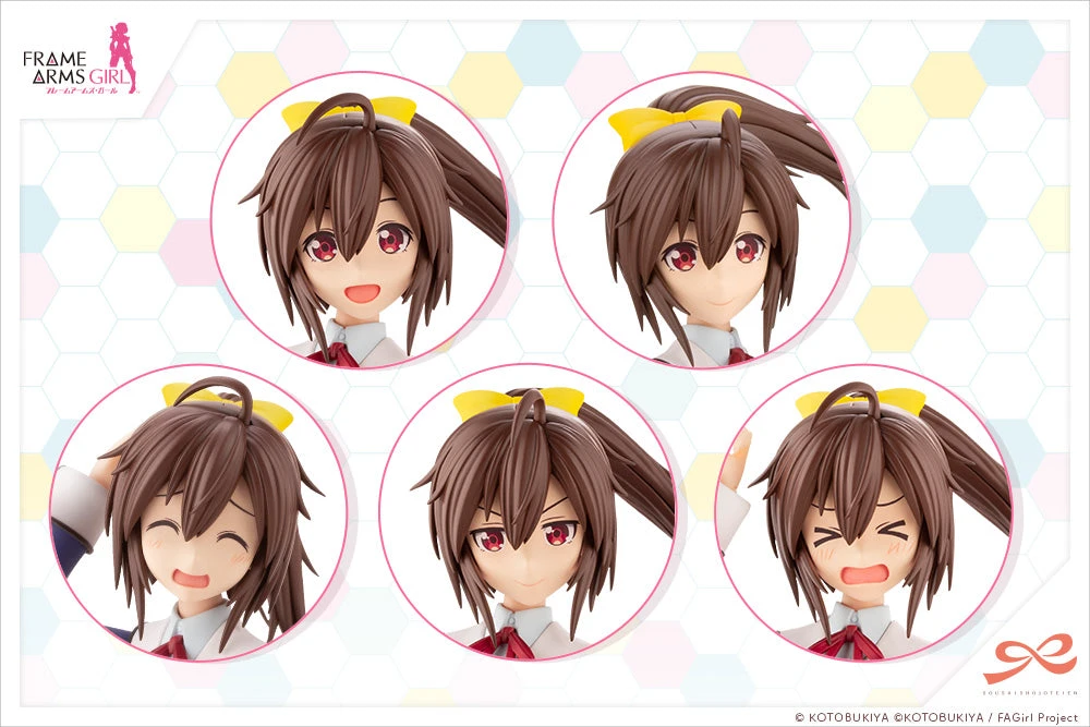 - 5 Unpainted face parts compatible with Frame Arms Girl (Standard, Smiling, Blushing, Smug, Cartoonish)