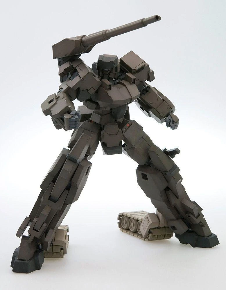 The Frame Arms Type 32 Model 1 Gourai gets an updated :RE model kit from Kotobukiya! It features the Frame Architect Type 001 body (which does not include a head or feet; the mech’s own head and feet provide those parts for the frame), for improved posability and stability. It’s molded in color so paint isn’t required, and its tank treads are movable and can be displayed in running or stored form. It’s armed with a 120mm low-recoil cannon and a tactical knife, too. Order today to increase your robot firepower!