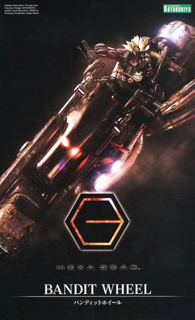 The Bandit Wheel has been spotted on the battlefield piloted by the Zoanthropus-Lowe Governor, with its central part dedicated to Hexagram storage, its changeable frame that adapts from motorcycle mode to hovercraft mode, its heavy armaments and its combinability with other Hexa Gear!Â