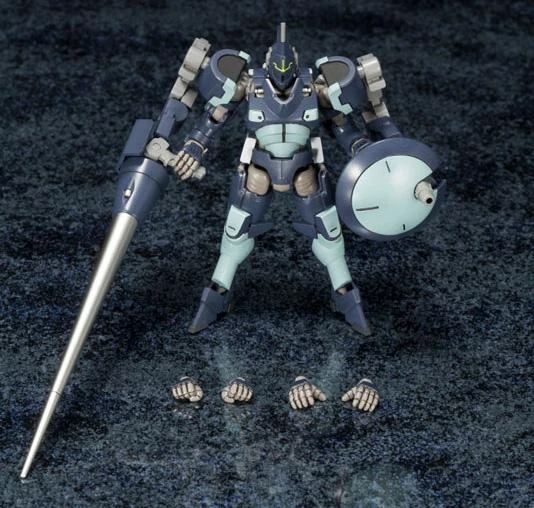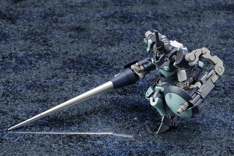 This figure is about 8cm tall, with 24 points of articulation for maximum action, including an abdomen made with flexible PVC. The shoulder armor has a 3mm hard point for use of other armor parts, and the stunning lance can be used for other Hexa Gear figures by removing the spear tip.