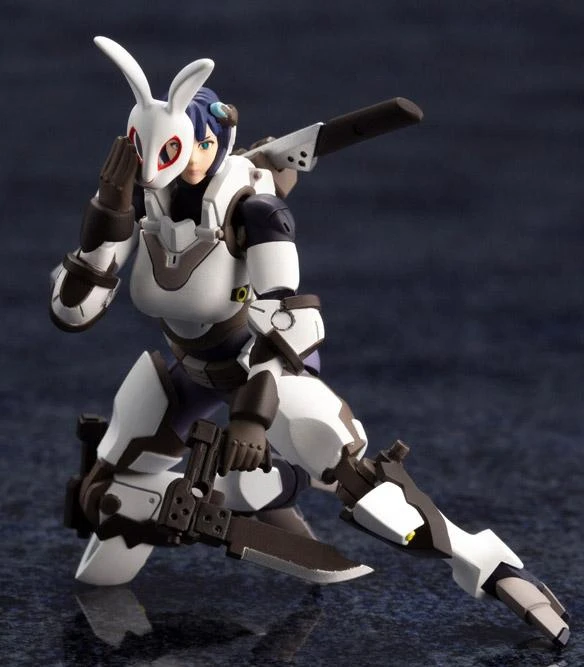 This updated version of the Hexa Gear Governor Para-Pawn LAT Mirror includes a newly revamped head part and updated materials. The new head part looks more realistic than the previous model and was based on the Early Governor Vol. 3, with a rabbit mask also included. The upper body armor is now made of PS material, making it easier to paint and modify, while the weapon holding hand has been modified to make it easier to display weapons included in other Governor models.