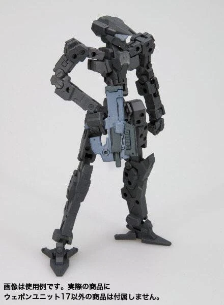M.S.G WEAPON UNIT 17 FREESTYLE GUN is an item in which users can create various forms of guns such as a “machine pistol,” “assault rifle,” and “sniper rifle” by rearranging the parts. The guns can additionally be combined with the multiple included magazines, so users can create their preferred silhouette for their weapon. Also, a 3mm hard point is set on the weapon’s main unit. Combine this item with various model kit parts including those of the M.S.G and Frame Arms series, to easily create an original weapon.