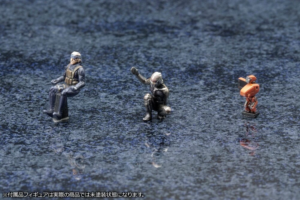 Please note that figures are not painted and camo decals on Metal Gear Rex are not included.