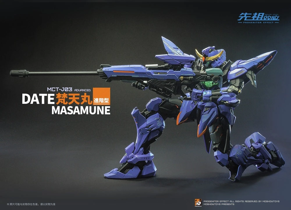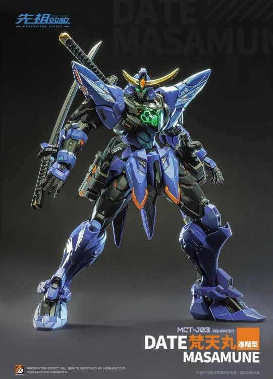 From the MOSHOWTOYS original work “PROGENITOR EFFECT” comes the next original armored model MCT-J03 Date Masamune Brahma Maru Mecha. The model features articulated joints with a wide range of articulation, making it easy to create all kinds of poses.